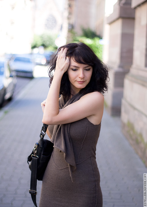 Summer is coming back ! Okay, I always begin my posts with a reference to weather, I promise not to do it next time ! ^^ During this summer lazyness, I show you the most uncomplicated outfit : dress with sandals, no accessory at all ! This knitted destructurated dress is one of my favourites. You know my love for this brand. These brown sandals are comfortable for a day trip in Strasbourg : vintage shops, visits and having a drink outside. Kisses ! Thank you so much for your comments and mails ! Even if you are on holidays, you are always here and I really appreciate it ! Love ! Xoxo