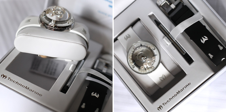 Je ne sais pas si vous avez remarqué sur les photos, mais l’avantage des montres Technomarine, c’est qu’on peut changer le bracelet sur la grande majorité des modèles et même changer le cover (autour du cadran, c’est un accessoire en silicone transparent ou coloré, qui peut complètement modifier l’allure générale de la montre). Plutôt sympa pour avoir l’impression de posséder plusieurs montres différentes ! ^^