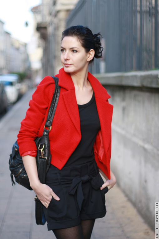 ooh, et puis avec ce petit short c’est parfait! J’adore cette tenue! Red forever et si en plus associé au noir: chicissime!!!